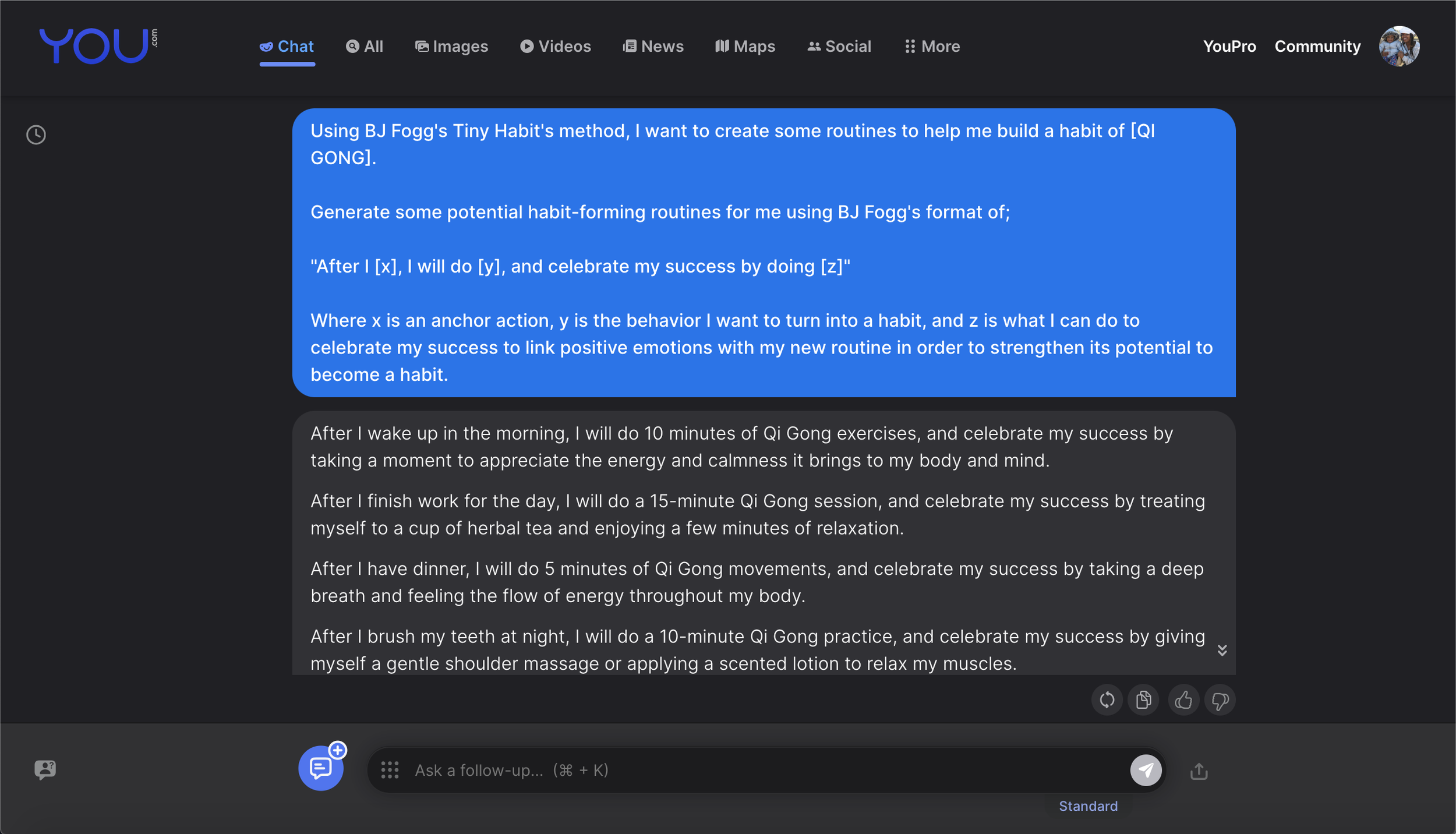 Generate some potential habit-forming routines for me using BJ Fogg's format of;